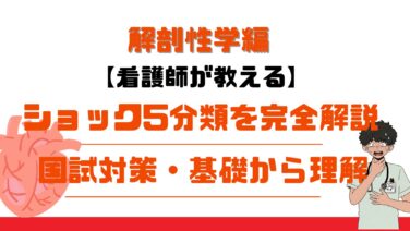 看護学生必見】ショックの5分類(心原性・血液分布性・循環血液量減少性・閉塞性・神経原性)を基礎から徹底解説。血圧の仕組み、末梢血管抵抗の理解、国試頻出のアナフィラキシーまで図表でわかりやすく説明。解剖生理が苦手でも大丈夫!実習・国試対策に役立つPDF無料プレゼント中。
